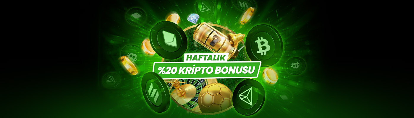 • Yukarıdaki koşullara uygun bir biçimde kripto ödeme yöntemiyle yapılan, her hafta ilk para yatırma işleminin %20'si 50.000 TL'ye kadar Bonus olarak kullanıcı hesabına aktarılır.